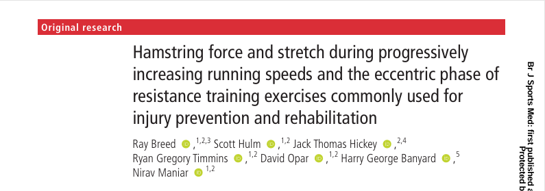 Hamstring force and stretch during progressively increasing running speeds and the eccentric phase of resistance training exercises commonly used for injury prevention and rehabilitation